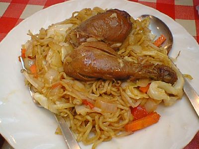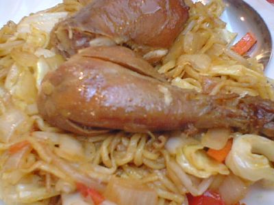 - カレー味のやきそばの上にどーんと鶏肉がのっています。まさにカレーやきそばという味だけど、ある意味で非常に日本人向けの味だと思います。カレーの味と出汁というかうま味の味です。おすすめ。(び)