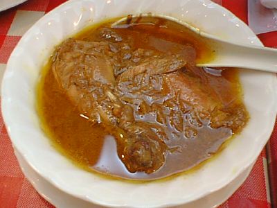 - サラサラのルーは、スパイスが非常にきいていて香りがとてもよいです。骨付きの鶏肉は柔らかく煮込まれていますが、肉の味がしっかりしていてスパイシーなルーに負けていません。