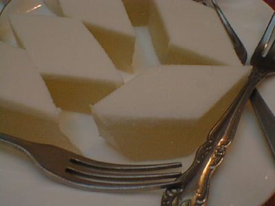 - サクっとしたココナッツの層の下はゼリー状になってます。甘いです。なかなか美味しいデザートです。(び)