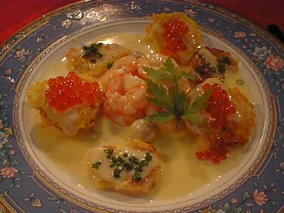 名前と見た目通りのバター風味です。バターソースとイクラがなかなかマッチしていてよかったけども、ロシア料理を食べたというよりも、フレンチを食べたという気分かな。(び)
