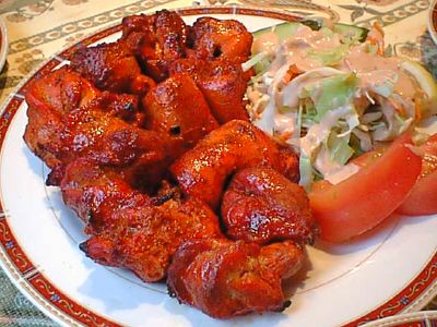 メニューにはラムチョップとかカバブとかも出てるけど、今日は作れないとのことで、チキンティッカだけ頼んだけど、とてもおいしかった。これは安いです。これだけ食べに来てもいいくらい。(め)