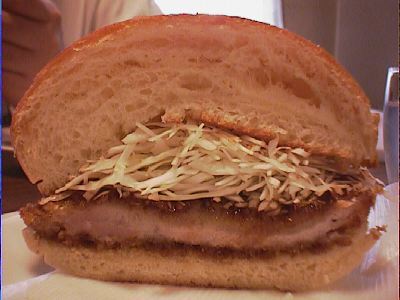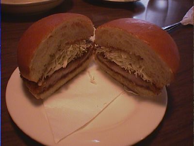 - カツドックひさしぶりだなぁ。なるほど、びnさんがこれを一番ぐらいに挙げるのはなんとなくわかる。まぁ食べやすさからいったら、初心者向けなんだが、ジューシー度はかなりある。僕にとっての一番ってのはなんだろうなぁ。やっぱ玉子か?(な)