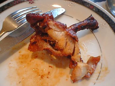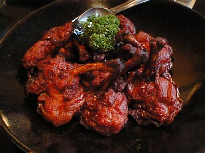 - よく言えば香ばしい、わるく言えば焦げてます。味は、甘さ辛さ(塩分)ともに濃いめです。これだけ食べてると喉が渇きます。ご飯が欲しくなるかも。もうちょっと塩味薄めにして、塩辛さじゃない辛さ(唐辛子とかの辛さ)を付けてくれるといいのにな。あまり、エスニックという感じではないです。鶏肉自体はよかったです。(び)