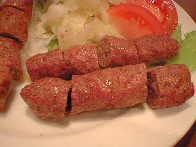 - 肉の弾力とジューシーさがとてもいいです。妙に塩辛いこともないし、付け合わせのキャベツやタマネギもとてもいい感じ。(び)