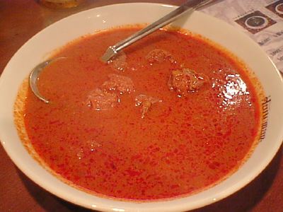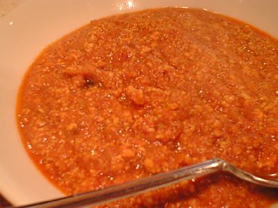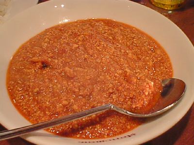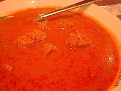 - 2、3口もらったのだけど、辛さがそれほどないので(と言っても普通の人には十分辛い?)、トマトの風味が際立っているように感じました。そぼろ状の鶏肉とルーの混ざり具合というか全体の粘度というか、その辺もいい具合ですね。(び)
