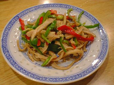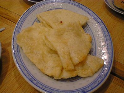 - メニューには予約が必要とあったけど、店の人が「今日は用意してある」とすすめてくれたので食べてみました。小麦粉で作った油揚げみたい。冷めてからでもそれほどまずくならいです。(め)