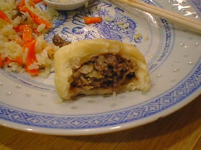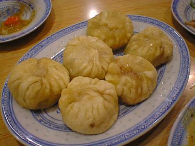 - 肉まんみたいな物です。具の感じはピロシキに近いかも。皮はかなり厚めで硬いです。熱々の汁が入っているので注意して下さいって言われたので、小龍包のように中にスープがたっぷり入っているのかと思ったけど、齧ってもスープは出てきませんでした。(び)