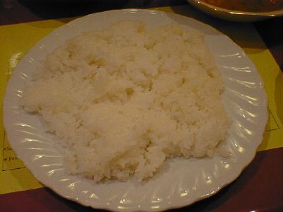 - ご飯はもっちりした感じに炊いてあります。カレーにはいまいち合わない感じですね。(を)