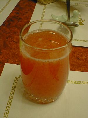 - これが来た時はすでに他の料理を食べている最中だったのでなかなか味がわからなかったのだけれど、けっこう苦い。特に下に沈んでる物(朝鮮人参?)からエキス分みたいなのがでててそれが苦い。(く)
