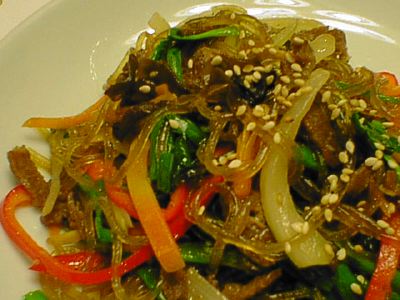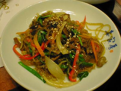 - この春雨はチャプチェとしてはコシが足りないかな。もっと春雨がプリプリして太いのが好きです。野菜などの具合はよかった。味付けは店の個性が出るところだけど、単品で食べるのにちょうどいい感じのすっきりした味で、これはこれで好きです。(め)