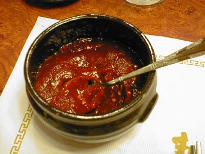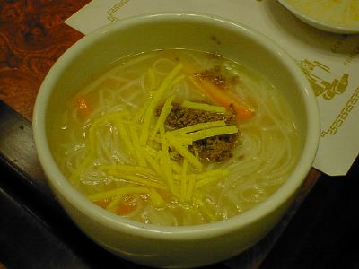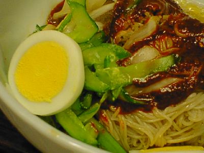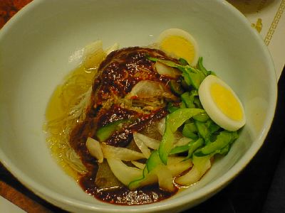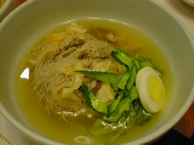 - これはビビン麺の甘ミソのかわりにスープをはっただけの違いですね。どうせならナシかリンゴかスイカ(はさすがに季節はずれだけど)を入れて欲しかったな。上にも書いたように、ここではビビン麺だけ食べればいいですね。(め)