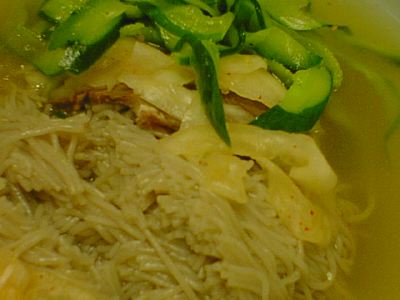 - フカヒレが、とてもたくさんはいっている。しかも細切りというのではなく、かなり大きめに切られた、まさに大大大サービスである。よーく味が染み込んでいて、かなり幸度がおおいかも。ちなみにフカはサメのことだが、なぜフカヒレと呼ばれるかと言うのは、最初に中国から伝わったのが、サメをフカと言う長崎であったからであろうと言われているようだ。(な)