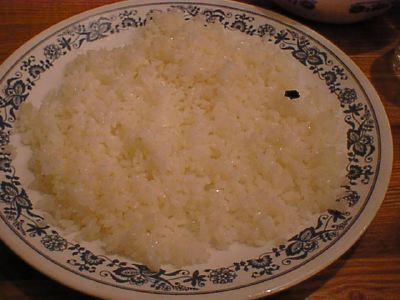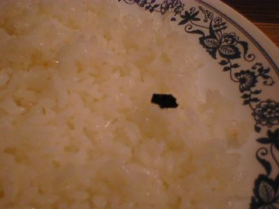 パラッとしてるだけでなくて、ライスがふっくらしてて、米の甘味がほのかに感じられる。スパイスの香りはほのか。このご飯は、カリーと食べたときに、旨みが最大限に引きだされる。口にいれたときホワッとした感じがする。カリーが米の一粒一粒にコーティングされ、すしが舌でホロッとくずれるような感じとでもいうのかなぁ。実際ここのご飯はとても凄いと思う。まるでスキがない。(な)