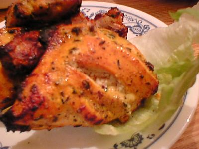 4Pのところを6Pで作ってもらえるか聞いてみたところ、半端になってしまうのでそれは無理とのこと。鶏の半身を4Pに分けて作っているのかな。毎度同じ表現になってしまうけど、香ばしくジューシーで、いわゆるスパイスヨーグルトに漬け込んで焼いたタンドールチキンとは違った美味しさが楽しめます。(め)
