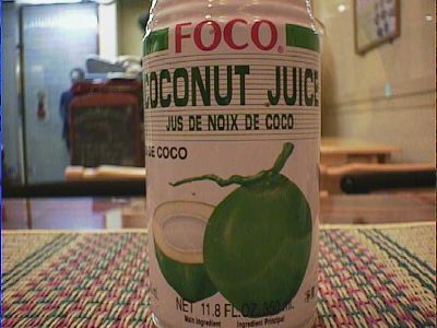 - ええとですね、ラオターさんに後で聞いたところ、今までと違うメーカーのココナッツジュースを仕入れたので、グラスに注いでみて、細かい実が出てきたので驚いたとのこと。次からはこの細かい実は入れないようにしてくれるそうです。あと、azukiさんが言う白濁したやつはココナッツミルクですね。ココナッツミルクと区別するときはこっちの透明なやつをココナッツウォーターと呼んだりします。普通、タイで飲むのは透明なココナッツウォーターですが、個人的にココナッツミルクのジュースも好きなので、入れてもらってもいいですね。(め)