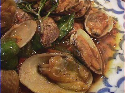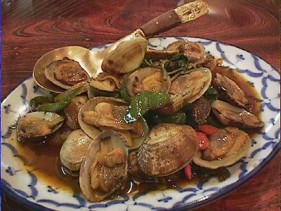 料理人さんの腕によりをかけた料理がたくさん堪能できて幸せでした。味にも満足しております。ただ、あれで5200円なんて申し訳ないです。ゲウチャイとかだったら、3品でそれくらいいっちゃいますから。あと昼にお二人が食べたパットホイライですが、私もこれをごはんと一緒に食べたいです。一人あさり一個ってんでなく、一皿かかえて食べたい。それと、パットパックブンファイデンをいっしょに・・・。(az)