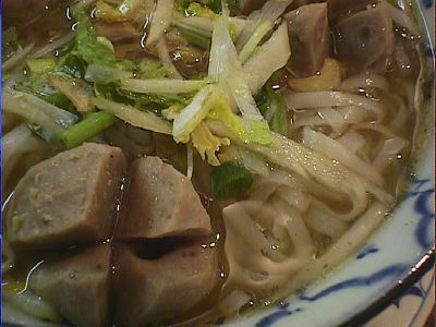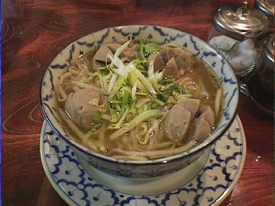 - すり身団子が、なつかしさを感じるような味でよかった。塩加減はこれ以上濃いとダメというギリギリだった。ただし、調味盆にナムプラーとかいろいろあるので、これでもいいんだけど、もうすこし押さえてもいいかもしれないね。辛い調味料を少しだけ入れて食べるのがかなりGoodだった。(な)