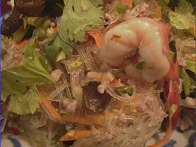 - 春雨サラダ。今日は変わった料理がたくさん出るため、ヤムは基本的なところでヤムウンセンとヤムヌアにしました。やはりポイントは質のいいプリッキーヌを使っているところですね。ひき肉もやわらかくてよい出来だったと思います。(め)