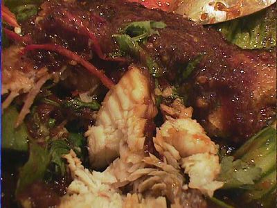 - お店によってはこれが甘すぎたり、化学調味料まみれだったりして、一口でいいや・・・ってこと多いですが、ここのは香と酸味が食欲を増進させていくらでも入ってしまいます。はじめの方の料理だし、一所懸命セーブするよう自分に言い聞かせながらいただきました。(az)