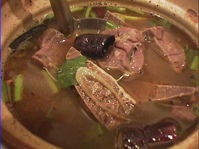 - 見るからに苦手そうな肉が入ってたので、サーブする私の特権で?内蔵を少なくしてとり分けてしまいました。しかし、スープに生臭さはなく滋味あふれるお味でした。(az)