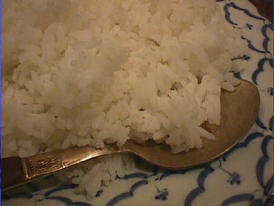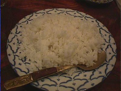 - タイ米。前は日本人に合わせて粒がくっつくほどやわらかく炊いていたのですが、もっとパラっとしているほうがよいと伝えてから、少しやわらかい程度にしてくれているようです。カレーと一緒に食べるにしてもチャーハンにするにしても、これくらいがよいと思います。(め)