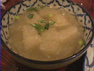 - ニンニクが強烈でしたが、おいしかったです。しかし、何よりダイコンのスープが最高。皆さんが棄権してくれたので、一人で一皿飲み干せて幸せでした。あれなら、いくらでも入りますね。滋味いったら、、、、。(az)