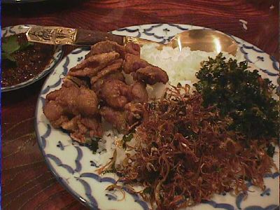 - 甘酢あんかけより、この味付けでうれしかったです。皮部分のバリバリもおいしいし、ここが一番おいしいよとびnさんに教えてもらった尾ひれの部分もしっかりいただいてしまいました。大満足です。お魚の崩し方が下手で時間かかり、アツアツの状態でサーブできなくてごめんなさいです。(私の近所に座った方々へ)(az)
