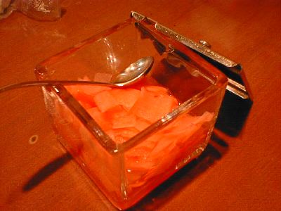 - ピンク色も酸っぱさもいつもより濃い目でした。(を)