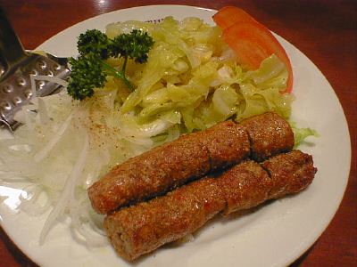 - きょうのシークカバブは、いつもよりも少しよく火が通ってたかな。弾力もいつもより少しあった。