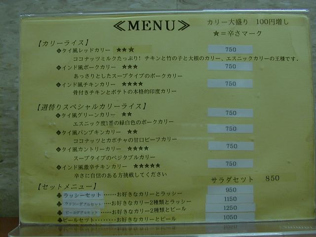 メーヤウ系(ピキヌー含む)のカリーというのは私好みで、手放しに絶賛してしまう程素晴らしいです。辛いくせにちゃんと味がわかるカリーというのはなかなかないものです。なにより料金が安くてうれしいですね。カリー食ったぞというきにさせられる、魅力的