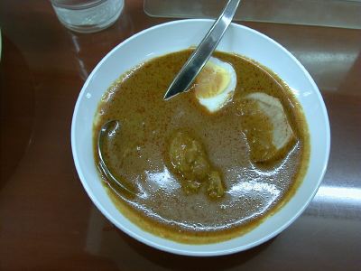 - 辛いのだけど、しっかり味がわかるというのは「ピキヌー」で食べたカリーもそうであったが、こちらはインド風チキン。この味は刺激的で、クセになる味。コリアンダー(だよね)がきいてて、チキンも骨付でやわらかく、食べ出したらとまらない、そんなカリー。(な)