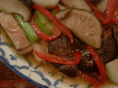 - これまた味わい深い、これは少々煮込んだ感じで、素材に味がよく浸透していて、なんとも素晴らしい、彩りに赤ピーマンが添えられています。(な)