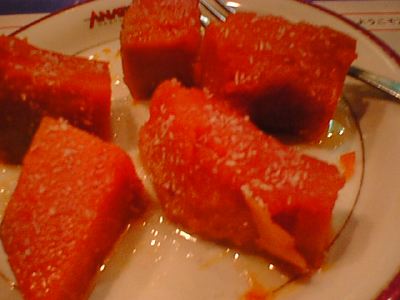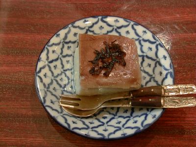 - またこのデザートが食べれるなんてラッキーです。上に載ったネギもそうだし、ネギ油がジワットしみでてきて、とろけるような美味しさです。(な)