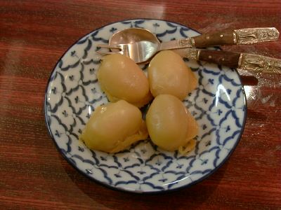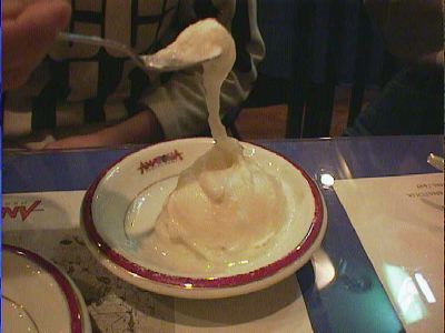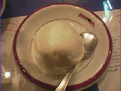 - 面白い味でしたが、乳脂肪分のこってり含まれてないアイスには食指が働かず、他のデザート食べるのに勤しんでました。どんなに暑い日でもシャーベットよりアイスクリームを選んでしまうタチですから。(az)