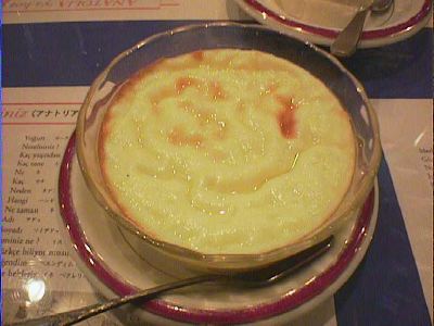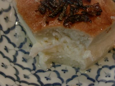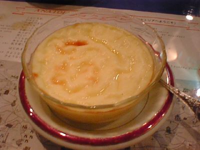 - 昔は米の甘いのなんて許せない私でしたが、食べなれると気にならなくなるようで、好きなデザートの一種になってしまいました。普段良く見かけるのはカスタード地のものですが、これは卵液が入っていなかったのであっさりして食べやすかったですね。トルコのデザートだから強烈な甘さを想像してましたが、おいしくいただけました。(az)