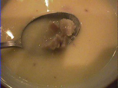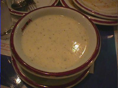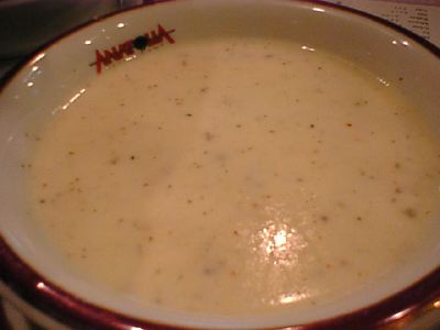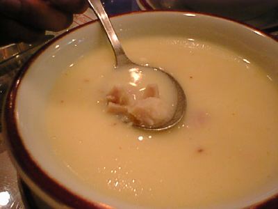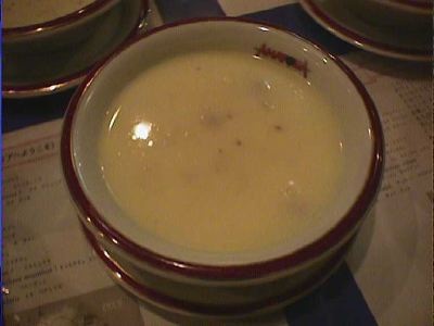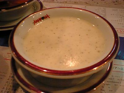 - スープ全体の感じは、具材に大きな肉や野菜の固まりなどのごろごろ入った具だくさんのシチュウっぽいものはなかったですね。かといってコンソメや中華のスープほど澄んだ軽いものでもなく、前菜とメインの中間にはいい感じでした。(az)