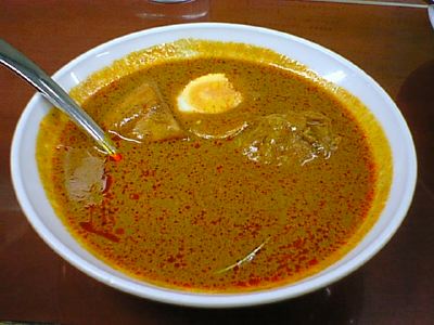 - ハチノスのスープで、かわってます。味は酸味がきいてて、食欲がでてきますね。スープの中ではこいつが一番好みだった。(な)