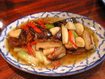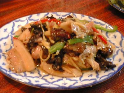 - タイ版の生姜焼きですね。これはお勧めします。今日のように小人数でご飯と一緒に食べるにはもってこいの料理。炒めも絶品ですね。(な)