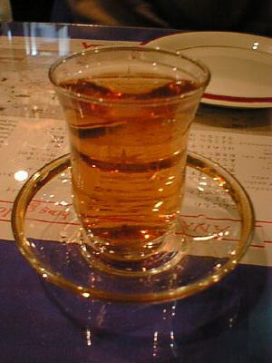 - チャイ用のガラスの器でした。リンゴの香りとハチミツたっぷりの甘〜い紅茶でしたが、量が少ないから気になりません。チビチビと堪能しながらいただきました。