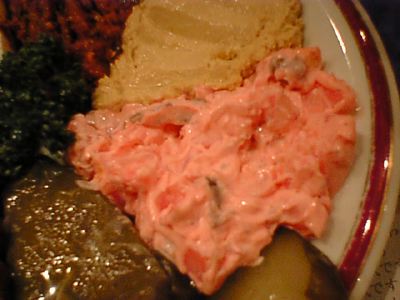 - フムスがにんにく強い味付けでなくって良かったし、その他のも塩気が強すぎるものなどなくって、食べやすかったです。惜しむらくは、ナスのペーストが入ってなかったことかな。(az)