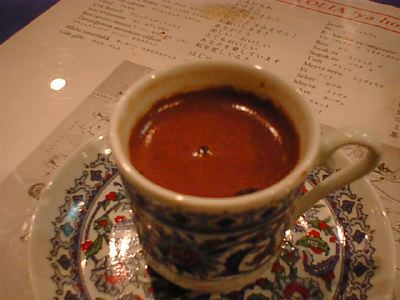 - トルココーヒーです。azukiさんが店にくる途中サービス券もらって、それがこれ。すごい濃いです。ドロドロしてて、ほんと凄い。(な)