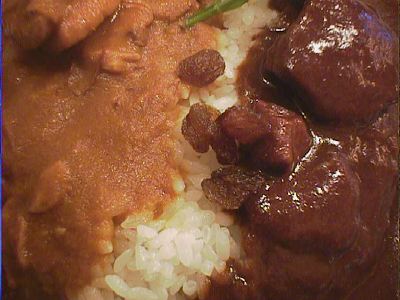 アベックカリーというのはいいですね。2種類のカレーが同時に味わえて。北野印度会社(だっけ?もうどこにもないかな?)のカレーを思いだします。味わいがしっかりしていて美味しいとは思うけど、インパクトがあまりないので、わざわざ遠くから足を運ぶほどの魅力はないかも。もしまた来る機会があれば他のドライカレーとかも試してみたいですね。(め)
