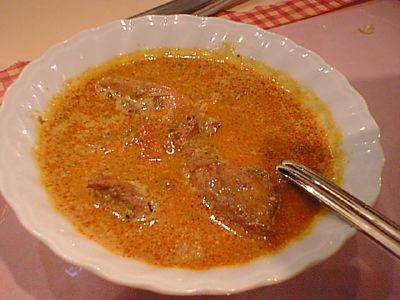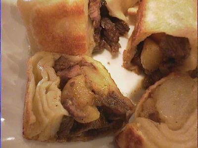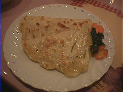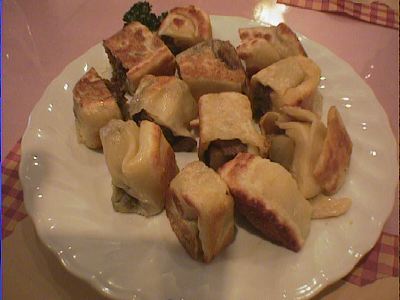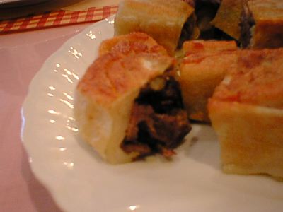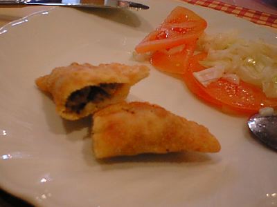 - 挽き肉の入ったパンのようなギョーザで、これ自体は普通なんだけど、一緒についてきたトマトソースが絶品で、これをつけることでとても美味しくいただけました。(め)