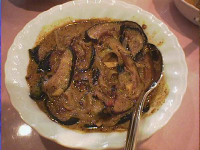 - 薄切りにしたナスがいっぱい入っています。ナスによく油がなじんでいて、上手に味を引きだしています。苦味がちょっと強いカレーです。(め)