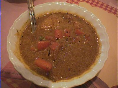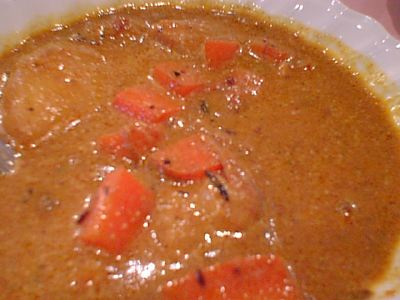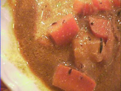 - ニンジンやジャガイモなどの野菜の火の通り具合がいいです。ナスカレーと一緒で、かなり苦味を感じます。(め)