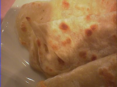 - まさにつくりたてのロティですね。ロティはチャパティとほぼ作り方がそっくりで、油を幾重にも塗りたくって重厚さを出すのだけどね。一般家庭では、大体複数枚つくって、ストックしておくようです。(な)