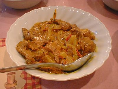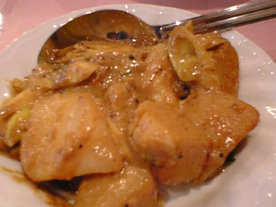 - 肉とジャガイモを炒めたものをロティでくるんだものですね。ゴダンバロティって昔食べたときもこんな感じだったっけ??ギョーザについてきたソースをこれにもつけて食べるんだけど、ギョーザ以上にソースに合うし、具もたっぷりでとても美味しかった。同じ値段のギョーザよりこっちをおすすめします。っていうか、これはこの店に来たら絶対食べるべきです。(め)