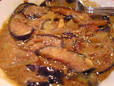 - ちょっと苦味があって、ナスの味がよくでていて独特の味をだしているように思う。(な)