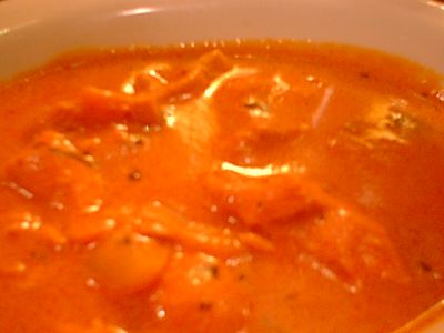 - 大きな皿のまんなかにライスを丸く盛って、そのまわりを白いスープでかこんでいる。味はクリームシチュー。ほうれん草はこまかくちぎって入ってるのであんまり入ってる気がしなかったなあ。味の濃い料理が多かったので最後がこれだったのはよかったかも。(か)