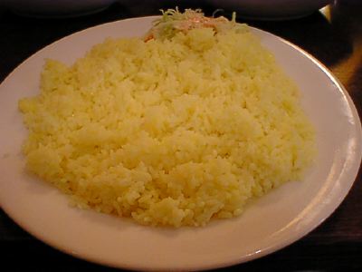 - ランチはライスかナンを選択できるが、ライスのほうを選択。ライスはイエローライスで、色合い固さともに上出来だと思う。(な)